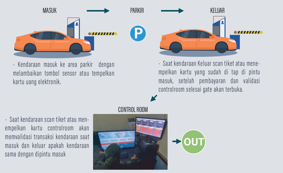 PRO adalah sebuah system parkir berbasis manless yang saat ini kami gunakan. System parkir ini telah di kembangkan sejak tahun 2006 dan sudah memiliki update pembaharuan dengan berbagai versi yang dapat disesuaikan dengan kebutuhan client.